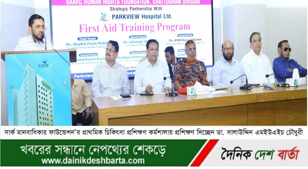 সার্ক মানবাধিকার ফাউন্ডেশন চট্টগ্রাম বিভাগের আয়োজনে প্রাথমিক চিকিৎসা প্রশিক্ষণ কর্মশালা ২৫ অক্টোবর শনিবার সকাল ১১ টায় পার্ক ভিউ হাসপাতালের কনফারেন্স হল রুমে অনুষ্ঠিত হয়। এতে অতিথি হিসেবে উপস্থিত ছিলেন