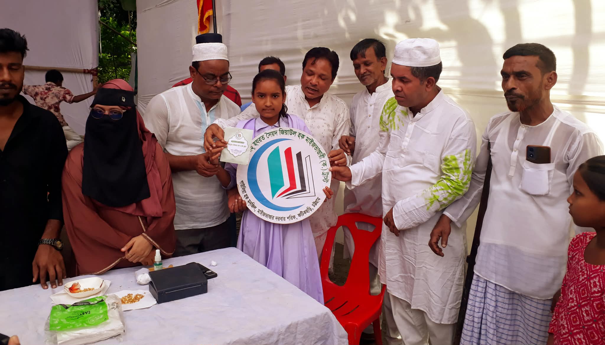 মহান পবিত্র বার্ষিক ওরশ শরীফ উপলক্ষ্যে শাহানশাহ্ হযরত সৈয়দ জিয়াউল হক মাইজভান্ডারী (ক.) ট্রাষ্টের ব্যবস্থাপনায় শতাধিক কিশোরীকে নাক ও কর্ণ ছেদনসহ বিনামূল্যে রিং ও ঔষুধ বিতরণ কালে উপস্থিত ছিলেন অত্র দরবারের আওলাদগণ যথাক্রমে, মো. গোলাম মাওলা চৌধুরী, মো. গোলাম ফারুক চৌধুরী, মো. গোলাম রব্বানী চৌধুরী, মো. নুরুল কাদের চৌধুরী, মো.গোলাম আজাদ চৌধুরী, অন্যান্যদের মধ্যে উপস্থিত ছিলেন চন্দনাইশ ও সাতকানিয়া মাইজভান্ডারী গাউসিয়া হক কমিটির সাংগঠনিক সমন্বয়কারী ডা. আব্দুর রহমান, সাংগঠনিক সমন্বয়কারী মো.আবু তাহের, আমির ভান্ডার কেন্দ্রীয় কমিটির সদস্য মো.বাদশা মিয়া, চন্দনাইশ উপজেলা “খ” জোনের সাংগঠনিক সমন্বয়কারী এম.শাহনেওয়াজ চৌধুরী, কাঞ্চনাবাদ ইউনিয়ন শাখার সভাপতি মো. আবুল কাশেম কোম্পানী, চন্দনাইশ প্রেসক্লাব আহ্বায়ক কমিটির সদস্য মো.জাহাঙ্গীর আলম চৌধুরী প্রমুখ।