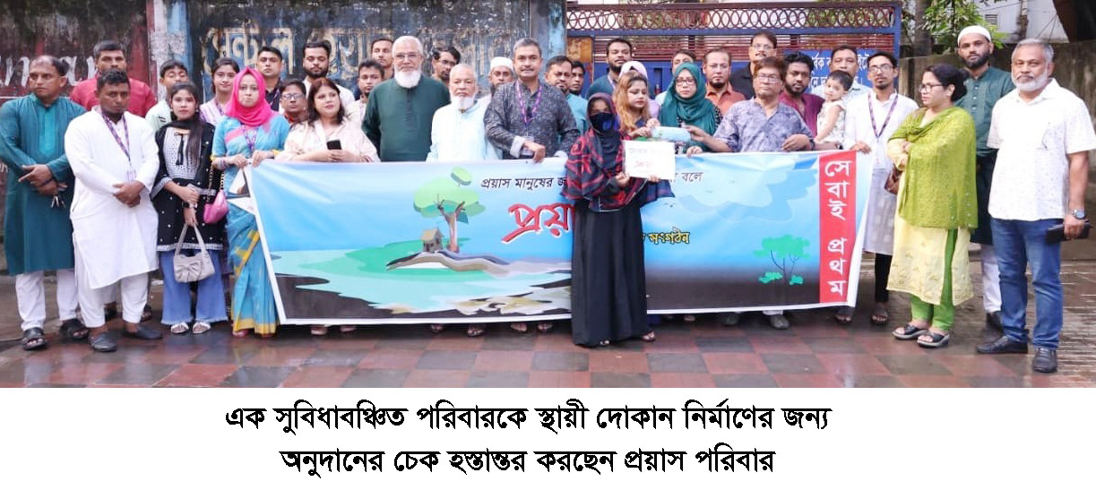 সামাজিক সংগঠন প্রয়াসের উদ্যোগে গত ২৬ সেপ্টেম্বর শুক্রবার বিকালে নগরের সেন্ট্রাল প্লাজা মার্কেট প্রাঙ্গনে সমাজে পিছিয়ে পরা এক সুবিধাবঞ্চিত পরিবারকে জীবন জীবিকার জন্য স্থায়ী দোকান নির্মাণ করার প্রত্যয়ে অনুদানের