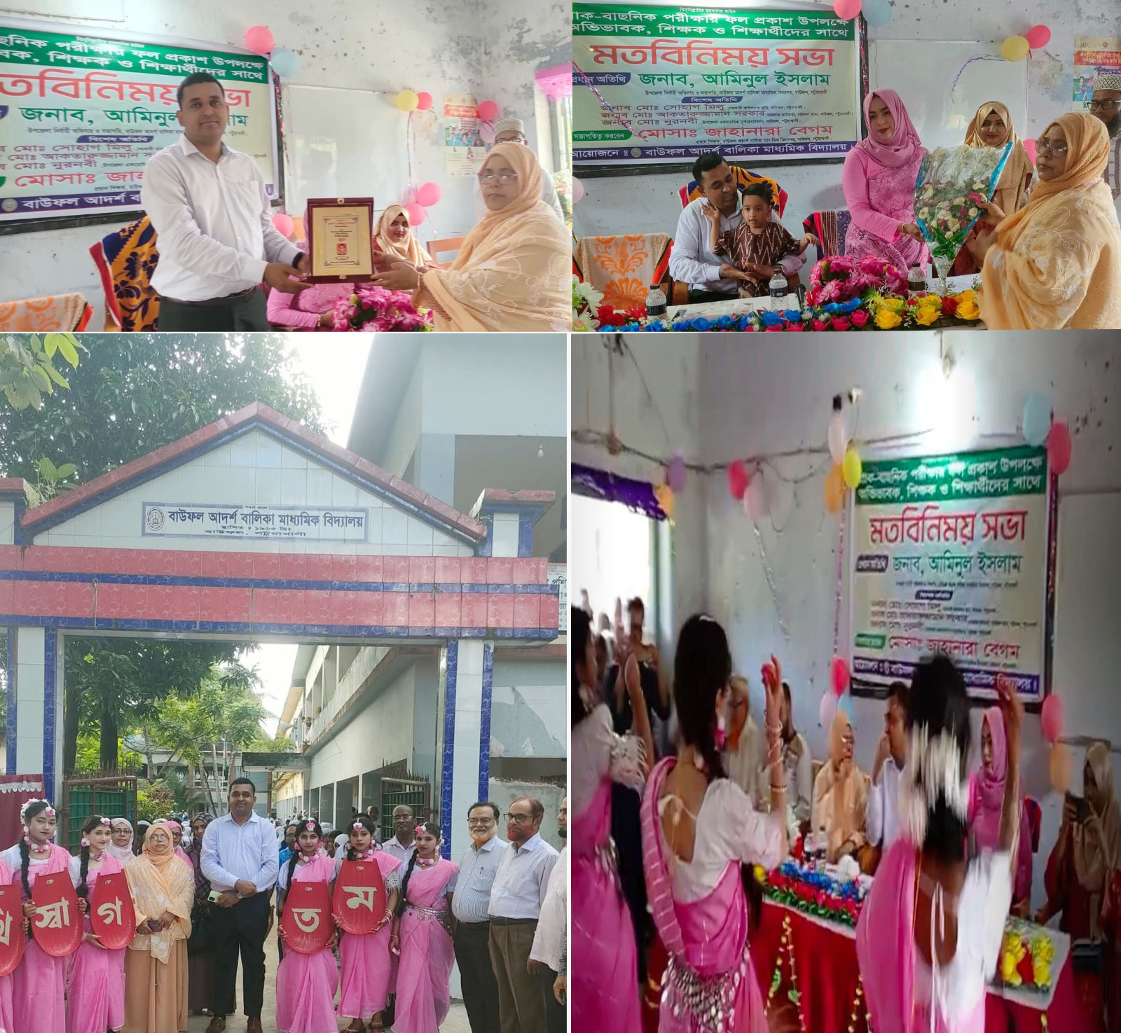 সবুজ সরকার পটুয়াখালী। পটুয়াখালীর বাউফল আদর্শ বালিকা বিদ্যালয়ে উপজেলা নির্বাহী অফিসার (ইউএনও) আমিনুল ইসলাম ও তার সহধর্মিণী নুরই আয়েশা সুচিকে সংবর্ধনা দিয়েছে শিক্ষক-শিক্ষার্থীরা। বিদ্যালয়ের সভাপতি হিসেবেও দায়িত্ব পালন করছেন ইউএনও