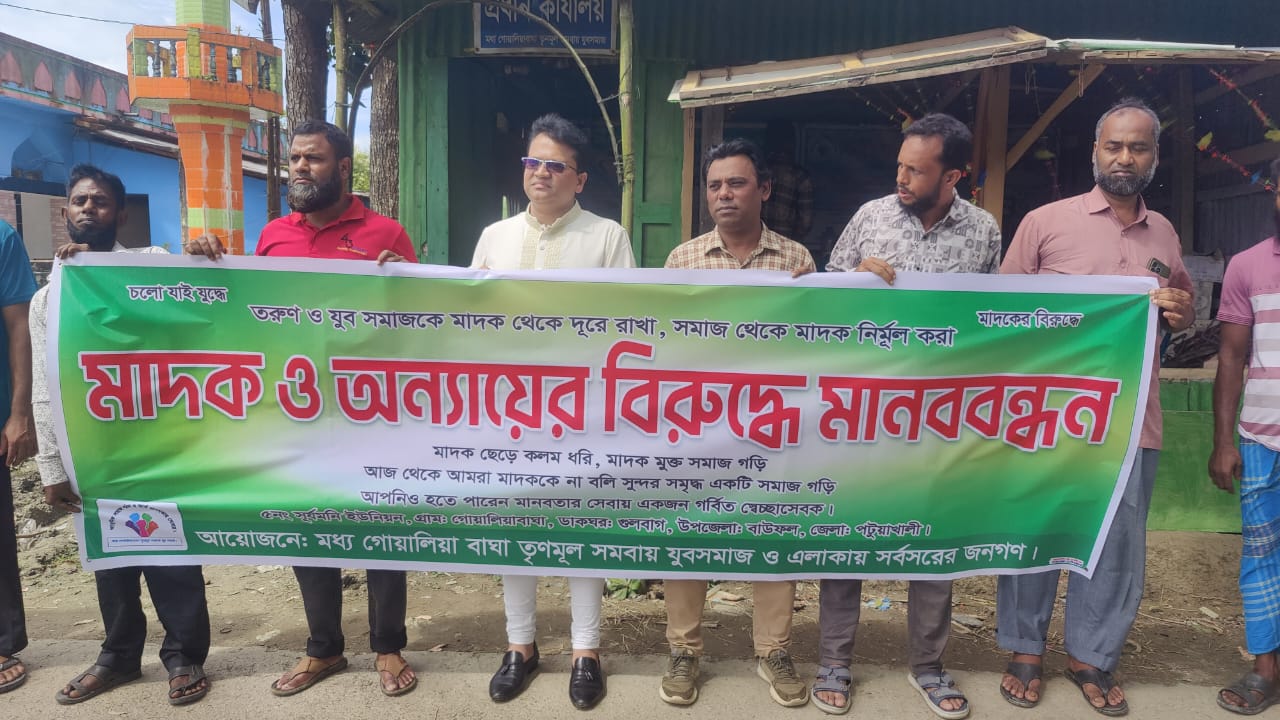 সবুজ সরকার পটুয়াখালী পটুয়াখালীর বাউফলে মাদক ও অন্যায়ের বিরুদ্ধে মানববন্ধন ও বৃক্ষরোপন কর্মসূচি পালন করেছেন মধ্য গোয়ালিয়াবাঘা তৃণমূল সমবায় যুব সমাজ। শুক্রবার (২৫ সেপ্টেম্বর) বেলা ১১টার দিকে উপজেলার গুলবাগ এলাকার