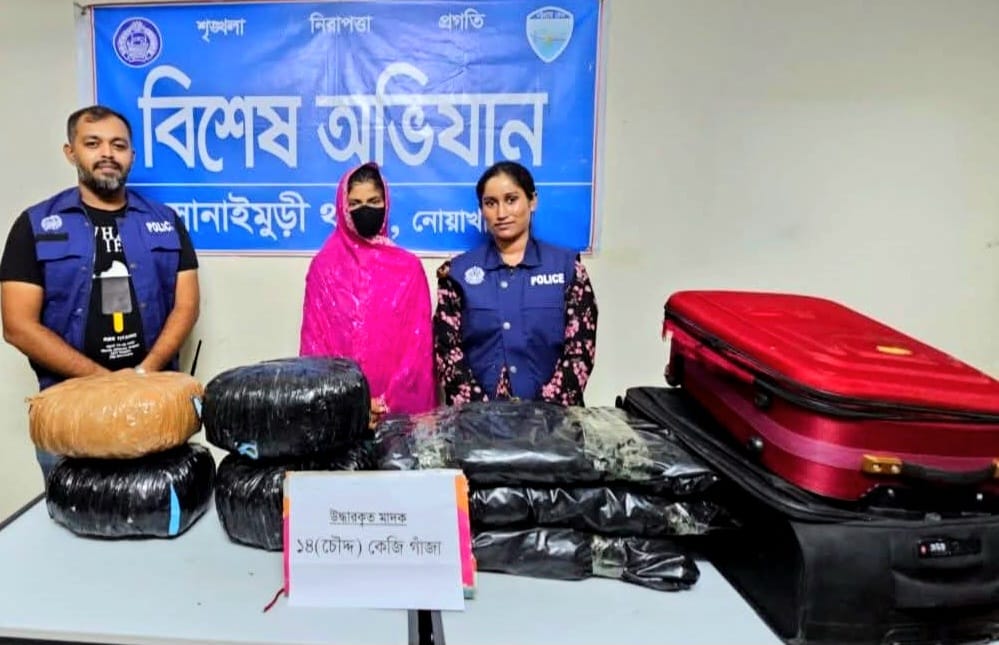 রবিউল হাসান, নোয়াখালী: নোয়াখালীর সোনাইমুড়ীতে থানা পুলিশের অভিযানে ১৪ কেজি গাঁজাসহ ১ নারী মাদক কারবারিকে আটক করেছে পুলিশ। শনিবার (২০ সেপ্টেম্বর) বিকাল পৌনে ৪ টার দিকে সোনাইমুড়ী পৌরসভার বাইপাস মোড়